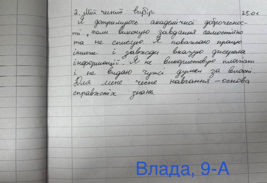 У ліцеї № 2 відбувся челендж «Я дотримуюсь академічної доброчесності», який об’єднав учнів і педагогів навколо цінностей чесного та відповідального навчання. Упродовж трьох днів здобувачі освіти брали участь у творчих, інтерактивних і пізнавальних активностях, що допомогли по-новому осмислити поняття академічної доброчесності.Учні створювали відео-звернення, ділилися власними роздумами про чесний вибір у навчанні, проходили онлайн-вікторину та демонстрували свої погляди через постери, слогани й меми. Особливу увагу було приділено темам самостійності, відповідальності та етичного використання цифрових технологій і штучного інтелекту.Челендж пройшов у доброзичливій, мотивуючій атмосфері та засвідчив високий рівень залученості учнів. Захід став ще одним кроком до формування культури академічної доброчесності як щоденного усвідомленого вибору кожного учасника освітнього процесу.