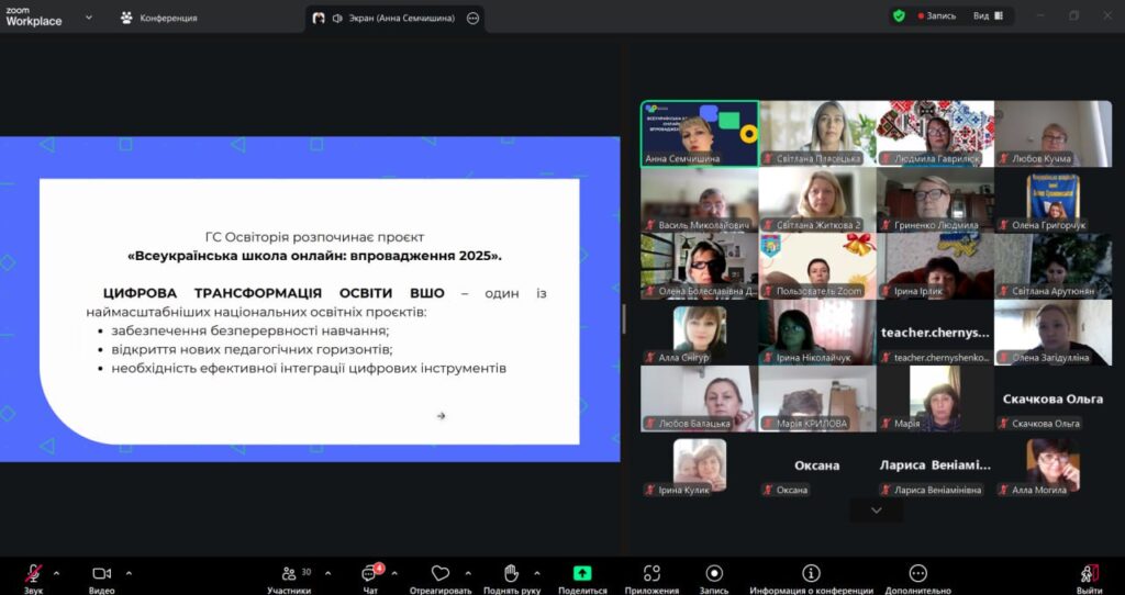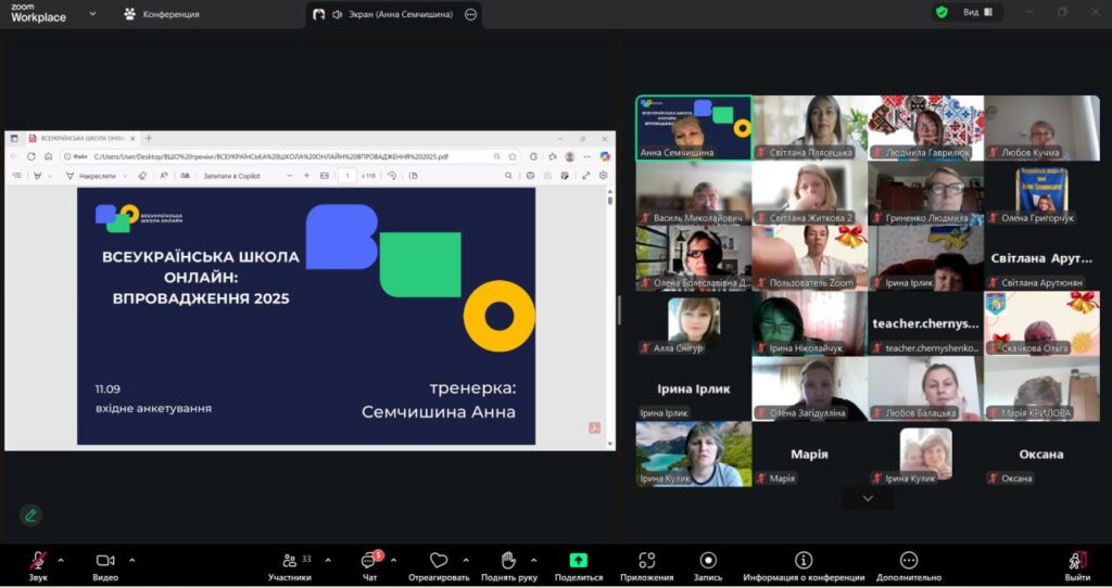 Сучасний учитель – це педагог, який постійно вдосконалює свої знання та навички. З метою реалізації експериментальної діяльності регіонального рівня під керівництвом КВНЗ “Херсонська академія неперервної освіти” щодо подолання освітніх втрат учнів педагоги Ліцею №2 Таврійської міської ради пройшли дводенний тренінг від Всеукраїнської школи онлайн (ВШО) та громадської спілки «Освіторія», який проводиться за підтримки Міністерства освіти і науки України, Міністерства цифрової трансформації України та Education Cannot Wait.Проєкт реалізується у 2025 році для навчання педагогічних працівників за допомогою матеріалів та функціоналу цифрової платформи. Під час тренінгу, який проходив 11 вересня та 15 вересня 2025 року на платформі ZOOM, учасники мали можливість ознайомитися з функціоналом платформи ВШО, опрацювати практичні кейси та отримати відповіді на актуальні запитання. 26 учителів ЗЗСО отримали сертифікати на 15 год/0,5 кредитів ЄКТС, а головне – нові знання та впевненість у використанні ресурсів ВШО в освітньому процесі. Учасники тренінгу висловлюють щиру подяку тренерці Анні Семчишиній за професіоналізм, компетентність, натхнення, толерантність та мотивацію рухатися до нових ідей та відкриттів за підтримки Всеукраїнської школи онлайн.